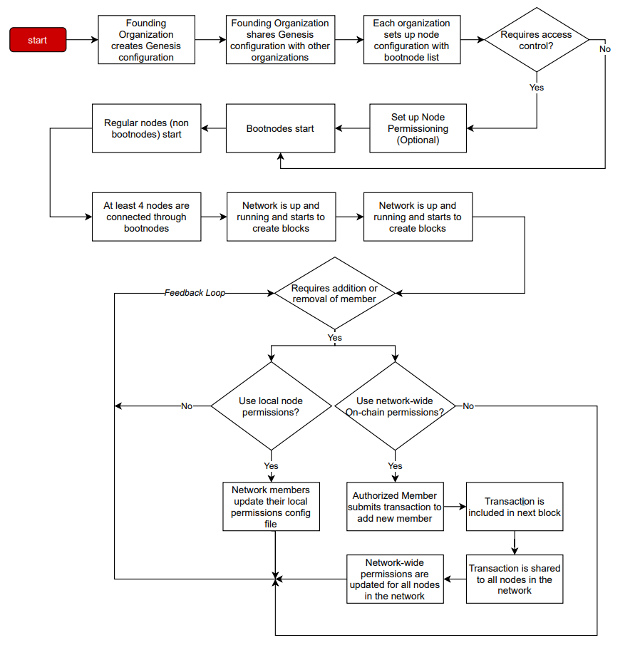 Besu๋ ๋คํธ์ํฌ๋ฅผ ์์ฑํ๋ ๊ณผ์ ์ญ์ ๊ต์ฅํ ๋จ์ํ๋ค. ์ด ๊ณผ์ ์ ํฌ๊ฒ 3๊ฐ์ ๋จ๊ณ๋ฅผ ํฌํจํ๋ค.