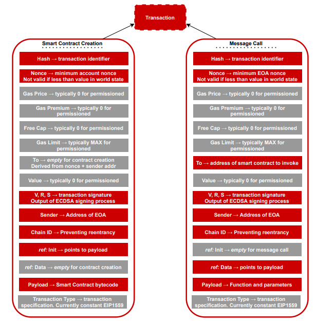 ์ด์ ์ฅ๋ถ์ ๊ตฌ์กฐ, ๊ณ์ ์ ์๋ฏธ์ ๊ตฌ์กฐ์ ๋ํด ๋ช ํํ ์๊ณ ์์ผ๋, ์ด์ ๊ณ์ ๋ค์ด ์ด๋ป๊ฒ ์ฅ๋ถ์ ํธ๋์ญ์ ์ ํตํ์ฌ ์์ ํ๋์ง ์์๋ณผ ์ ์๋ค. ํธ๋์ญ์ ์ 3.4์ ์๋ ํจ์๋ค์ ๊ตฌํํ๋ค. ์ด ์ธํฐํ์ด์ค๋ก Besu๊ฐ ํธ๋์ญ์ ํ์ ์ ๋ฉ์์ง ์ฝ๊ณผ ๊ณ์ฝ ์์ฑ์ผ๋ก ๊ตฌ๋ถํ๊ณ ์์์ ์ ์ ์๋ค.