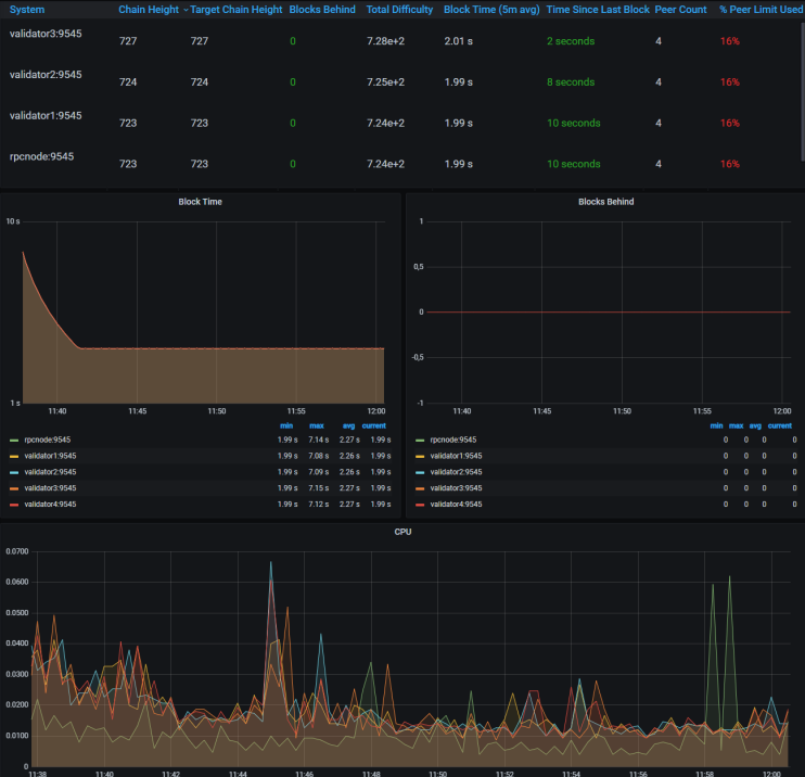๋น๋ก HTTP ํน์ WebSocket ๋ฉ์์ง๋ก ๋ ธ๋์ ์ง์ ํต์ ํ๋ ๊ฒ์ด ๊ฐ๋ฅํ์ง๋ง, ๋ผ์ด๋ธ๋ฌ๋ฆฌ๋ฅผ ์ฌ์ฉํ ์๋ ์๋ค. Besu๊ฐ ์ด๋๋ฆฌ์ ํ๋กํ ์ฝ์ ๋๋ถ๋ถ์ ๊ตฌํํ๊ธฐ ๋๋ฌธ์(์๋ช ๋์ง ์์ ํธ๋์ญ์ ์ ์ ์กํ๋ ๋ถ๋ถ ์ ์ธ), ์ด๋๋ฆฌ์ ํ๋กํ ์ฝ์ ํตํด ์ํธ์์ฉํ ์ ์๋ ๋ชจ๋ ๋ผ์ด๋ธ๋ฌ๋ฆฌ ๋ค์ Besu์ ์ฌ์ฉํ ์ ์๋ค. ์ ๋ช ํ ๋ผ์ด๋ธ๋ฌ๋ฆฌ๋ Web3.js(JavaScript), Web3j(Java), Web3py(Python), Nethereum(.Net)์ด ์๋ค. ๋ผ์ด๋ธ๋ฌ๋ฆฌ์ ๋ง์ฐฌ๊ฐ์ง๋ก ์ด๋๋ฆฌ์ ๋คํธ์ํฌ์ ํต์ ํ๋ ์ดํ๋ฆฌ์ผ์ด์ ๋ค๋, ์ปค์คํ ๋คํธ์ํฌ์ ์คํ์ ๋ง์กฑํ๋ค๋ฉด, Besu์ ์ ์ฉ๋ ์ ์๋ค. Truffle, Remix ๋ ์ค๋งํธ ์ปจํธ๋์ ๋ฐฐํฌํ๊ณ ํ ์คํธ ํ๋๋ฐ ์ ๋ช ํ ๋๊ตฌ๋ค์ด๋ค. Tenderly๋ ๋ถ์์๋ฃ๋ฅผ ๋ชจ์ผ๊ณ , ์ค๋งํธ ์ปจํธ๋์ ๋ชจ๋ํฐ๋งํ๋๋ฐ์ ์ฌ์ฉํ ์ ์๋ค. ์ถ๊ฐ์ ์ผ๋ก Prometheus๋ Besu ๋คํธ์ํฌ๋ฅผ ๋ชจ๋ํฐ๋ง ํ๋๋ฐ ์ฌ์ฉํ ์ ์๋ค. Grafana๋ Prometheus๋ก ๋ชจ์ ๋ฐ์ดํฐ๋ฅผ ์๊ฐํํ ์ ์๋ค. ๊ทธ๋ฆผ 3.18์ Besu ๋คํธ์ํฌ์ ๋ชจ๋ํฐ๋ง ์ ๋ณด๋ฅผ ๋ณด์ฌ์ฃผ๋ Grafana ๋์๋ณด๋์ด๋ค. ๋ช ๋ฐฑํ ์ด์ ๋ค๋ก, ๋ฐ์ดํฐ ํ๋ผ์ด๋ฒ์์ ๊ฐ์ Besu์ ํน์ง ๊ธฐ๋ฅ๋ค์, ์ด๋๋ฆฌ์ ๋ผ์ด๋ธ๋ฌ๋ฆฌ๋ฅผ ํ์ฉํ๋ ๊ฒฝ์ฐ์๋ ์ฌ์ฉ์ด ๋ถ๊ฐ๋ฅํ๋ค. Besu ๊ณ ์ ์ ๊ธฐ๋ฅ์ ์ฌ์ฉํ๋ ค๋ฉด ์น์ 6.2์ ์์ธํ ์ค๋ช ๋ Web3.js-eeea59์ ๊ฐ์ด EEA ํ์ฅ ๋ฒ์ ์ ์ฌ์ฉํ ์ ์๋ค.