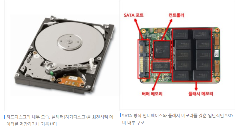 SSD๋ ๋ฐ๋์ฒด์ด๊ธฐ ๋๋ฌธ์ ์ ๊ธฐ์ ํธ๋ก ์ ๋ณด๋ฅผ ์ฝ๊ณ ์ฐ๋ ๋ฐ๋ฉด์, HDD๋ ๋ฌผ๋ฆฌ์ ์ผ๋ก ํ์ ์ ํ๋ฉฐ ์ ๋ณด๋ฅผ ์ฝ๊ณ ์จ์ผํ๊ธฐ ๋๋ฌธ์, ์ ์ฅํ๊ฑฐ๋ ์ ์ฅํ ๊ฒ์ ๋ถ๋ฌ์ค๋ ์๋๊ฐ SSD๊ฐ ํจ์ฌ ๋น ๋ฆ ๋๋ค. ๋์ HDD๋ SDD๋ณด๋ค ๊ฐ๊ฒฉ์ด ๋ ์ ๋ ดํ๊ธฐ ๋๋ฌธ์, ์ฌ์ง, ๋์์, ์์ ๋ฑ ๋๋ถ๋ถ์ ๊ฒฝ์ฐ ์ ์ฅ๋ง ํ๊ณ ์์ ํ์ผ๋ค์ด ๋ง๋ค๋ฉด HDD๋ ์ ์ฉํ๊ฒ ์ต๋๋ค. ํ์ง๋ง ํ์ผ์ ์ ์ฅํ๊ณ , ์ฝ์ด์ค๊ณ ํ๋๋ฐ์ ์๋์ ์ฒด๊ฐ์ ๋๋ผ๊ณ ์ถ๋ค๋ฉด SSD์ ๋๋ค. ์ ๋ ๊ฐ์ธ์ ์ผ๋ก ์ปดํจํฐ์๋ SSD๋ฅผ ์ฌ์ฉํ๊ณ , ์ธ์ฅ ์ ์ฅ์ฅ์น(USB์ฒ๋ผ ๊ฐ์ง๊ณ ๋ค๋ ์ ์๋ HDD, SSD)๋ ํด๋ผ์ฐ๋(์ธํฐ๋ท์ ํ์ผ์ ์ ์ฅํ ์ ์๋ ๊ฐ์๊ณต๊ฐ)๋ฅผ ์ด์ฉํด์ ์ ๋ณด๋ฅผ ์ ์ฅํ๋ ๊ฒ์ ์ถ์ฒํฉ๋๋ค.