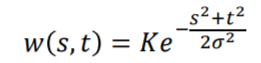 ์ด ์์์, 2D ๊ฐ์ฐ์์ ๋ถํฌ๋ฅผ ๊ทผ์ฌ ์์ผ, ํํฐ ๋ด ์ขํ๊ฐ๋ง ๋ฃ์ผ๋ฉด ๊ฐ์ค์น๋ฅผ ๋ง๋ค ์ ์๊ฒํ ๊ฒ์ด๋ค. ์ด ์์์ ๋ณด๋ฉด, ๊ฒฐ๊ตญ s, t์ ์ ๋์ ์ธ ํฌ๊ธฐ. ์ฆ ํํฐ์ ํฌ๊ธฐ ์ญ์ ๊ฒฐ๊ณผ์ ์ํฅ์ ๋ฏธ์นจ์ ์ ์ ์๋ค. ๊ฐ์ฐ์์ ํํฐ๋ ํํฐ์ ํฌ๊ธฐ์, ๋ถํฌ์ ํ์คํธ์ฐจ์ ์ํฅ์ ๋ฐ๋๋ค. ์ฐธ๊ณ ๋ก ํํฐ์ ํฌ๊ธฐ๋ ๊ทธ ์ ๋ฐ์ด ํ์คํธ์ฐจ์ 3๋ฐฐ์ ๋น์ทํ๋๋ก ์ค์ ํ๋ ๊ฒ์ด ์ข๋ค๊ณ ํ๋ค.