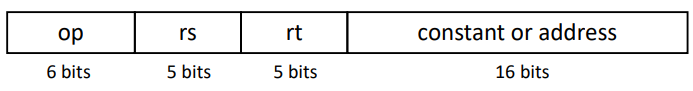 ๋ฐ๋ผ์ I-format์ R-format๊ณผ ๋ง์ฐฌ๊ฐ์ง๋ก 32bit์ด์ง๋ง, R-format ๋ฑ์ผ๋ก add, sub ๋ฑ์ ์คํํ๋ค๋ฉด, I-format์ผ๋ก addi, lw, sw ๋ฑ์ ๋ช ๋ น์ด๋ฅผ ์คํํ๋ค. ๊ด์ฌํ๋ ๋ช ๋ น ์ข ๋ฅ๊ฐ ๋ค๋ฅด๋ค.